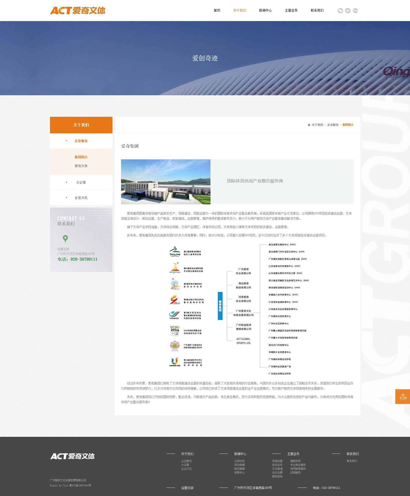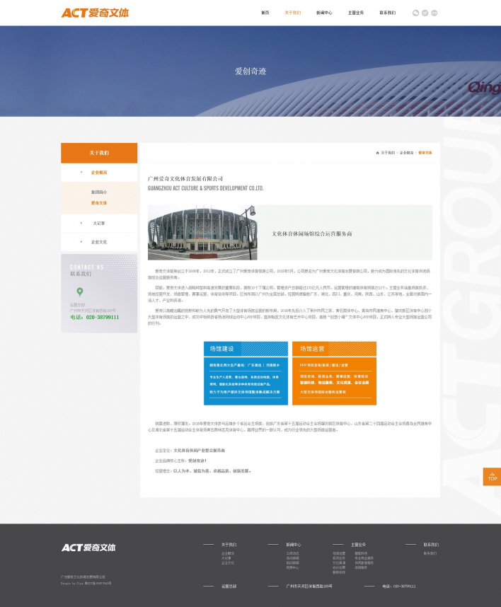 目前,愛奇文體進入戰略轉型和高速發展的重要階段,擁有10個下屬公司,管理資產總額超過170億元人民幣,運營管理的建制體育場館達12個。主營業務涵蓋場館投資、場地經營開發、場館管理、賽事運營、體育培訓等項目。區域布局以廣州為全國總部,經營跨度輻射廣東、湖北、四川、重慶、河南、陜西、山東、江蘇等地,全面對接國內一流人才、產業和資源。