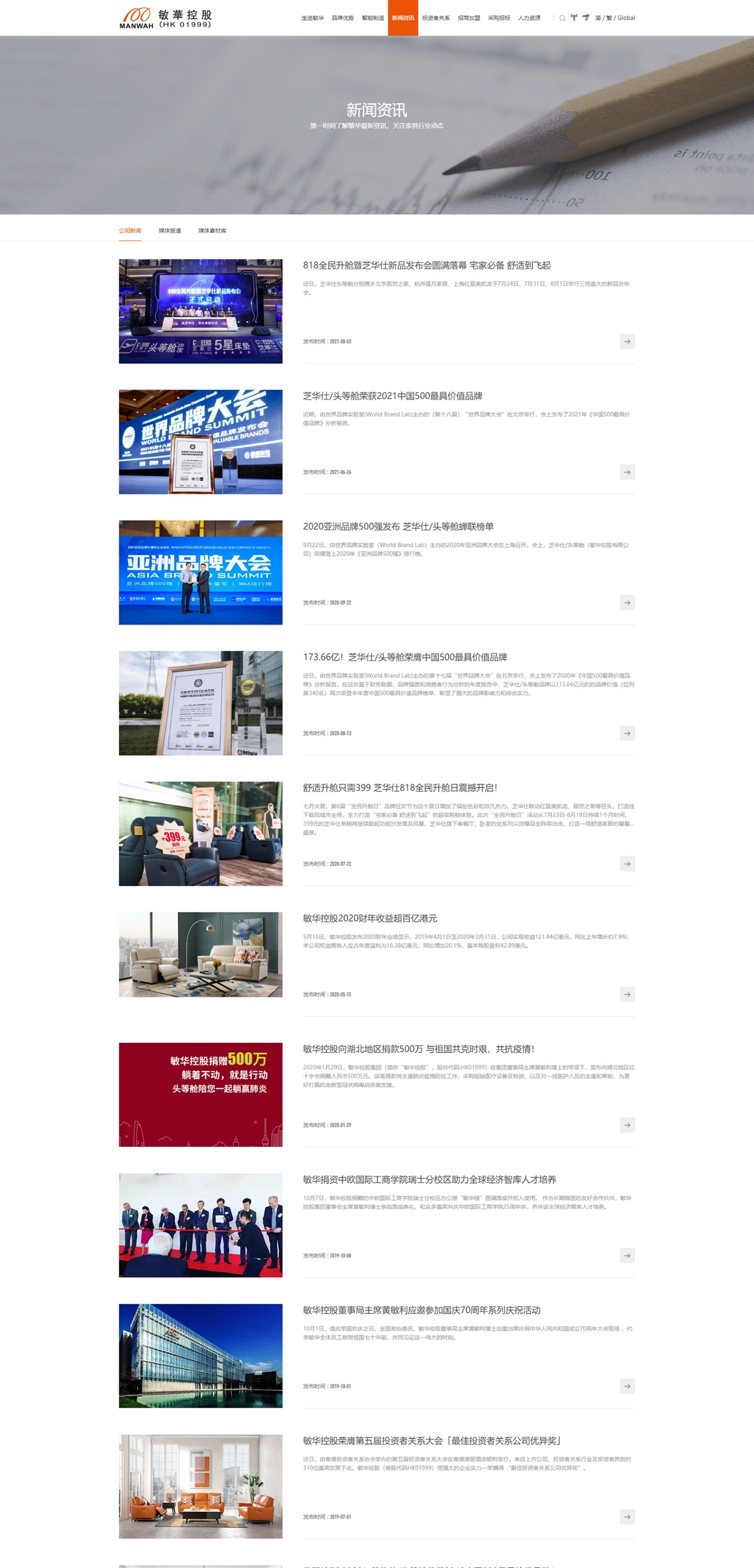 CHEERS芝華仕是敏華控股旗下極具影響力的家居品牌,包括CHEERS芝華仕頭等艙沙發貴族系列、CHEERS芝華仕頭等艙沙發時尚系列、CHEERS芝華仕沙發都市系列、CHEERS芝華仕5星床墊、CHEERS芝華仕智能床系列、CHEERS芝華仕沙發宜居布藝系列。在國內,CHEERS芝華仕頭等艙沙發擁有超過2500家專賣店,2017年在中國大陸功能沙發市場占有率達到44.8%,連續8年領跑中國功能沙發零售市場,深得行業和消費者的肯定。