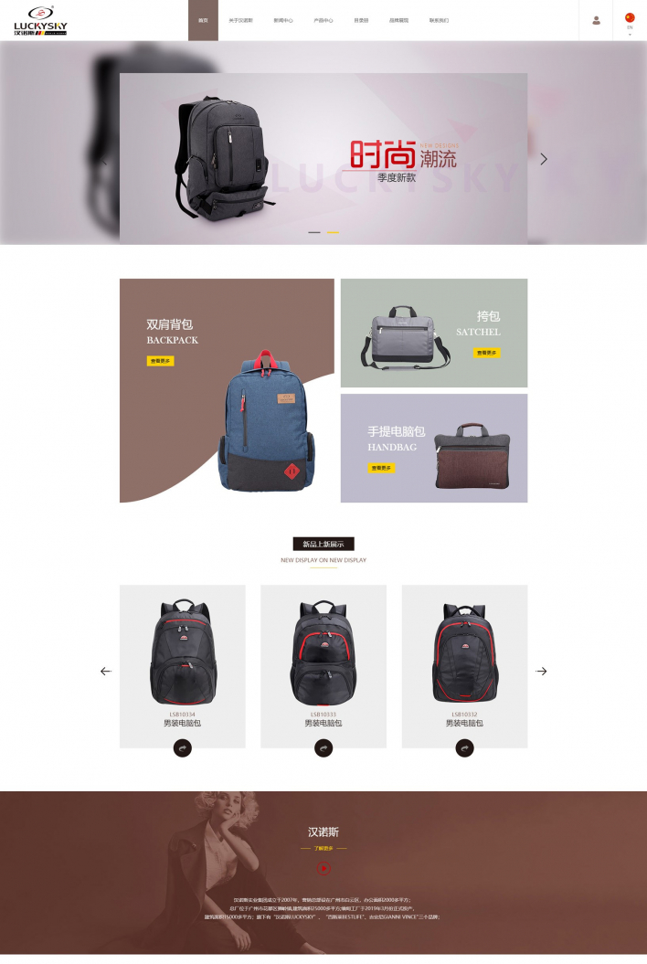 主要產品有尼龍背包、尼龍手提包、拉桿箱、數碼相機包、內袋包、IPAD/IPHONE套、全真皮男女背包、全真皮男女手提包、時尚尼龍料配真皮包等等;是全球箱包、皮具類全系列產品集研發、生產及品牌營銷為一體的優質企業。