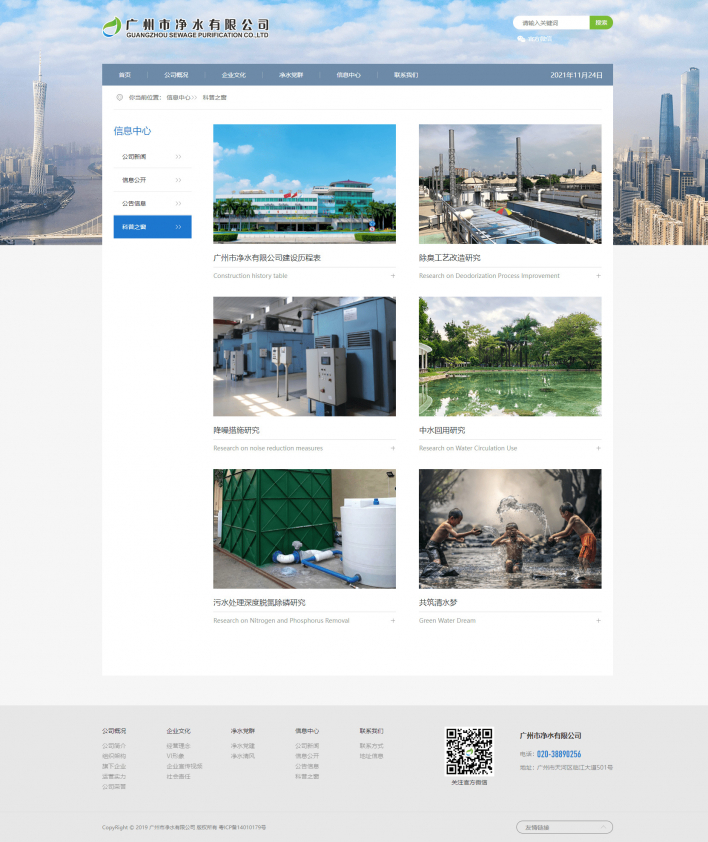 廣州市凈水有限公司是廣州市水務投資集團有限公司的全資子公司,創建于1989年,發展至今已成為一家集污水處理、建設、運營、資產經營及研發為一體的特大型國有污水處理企業。