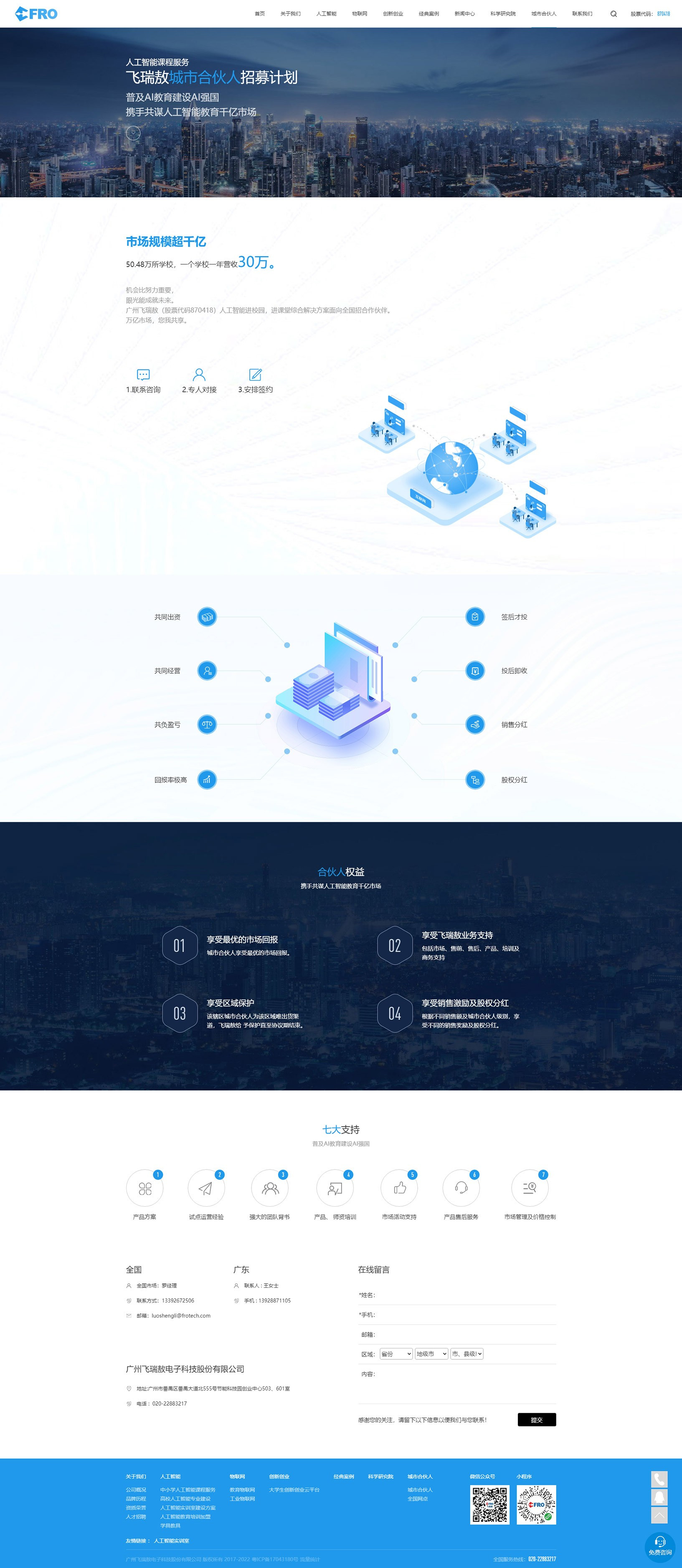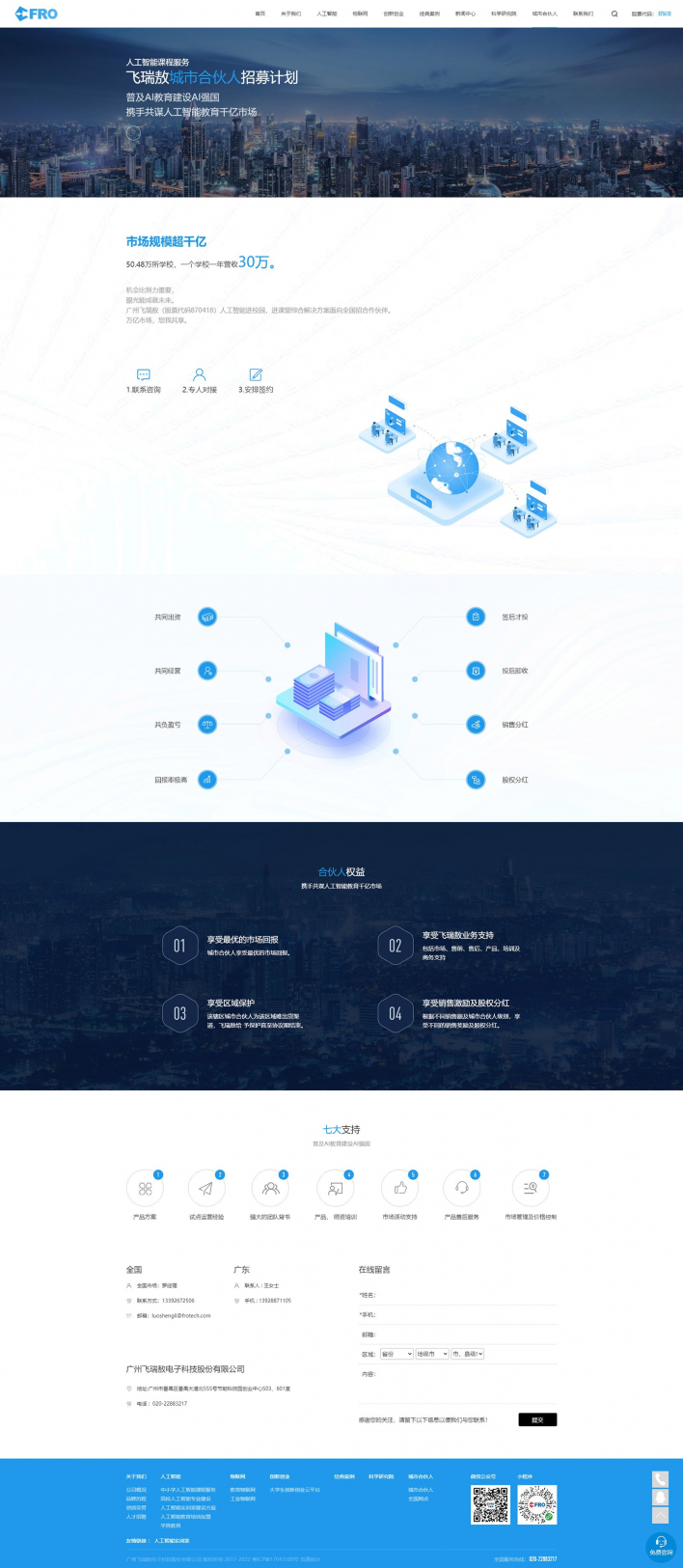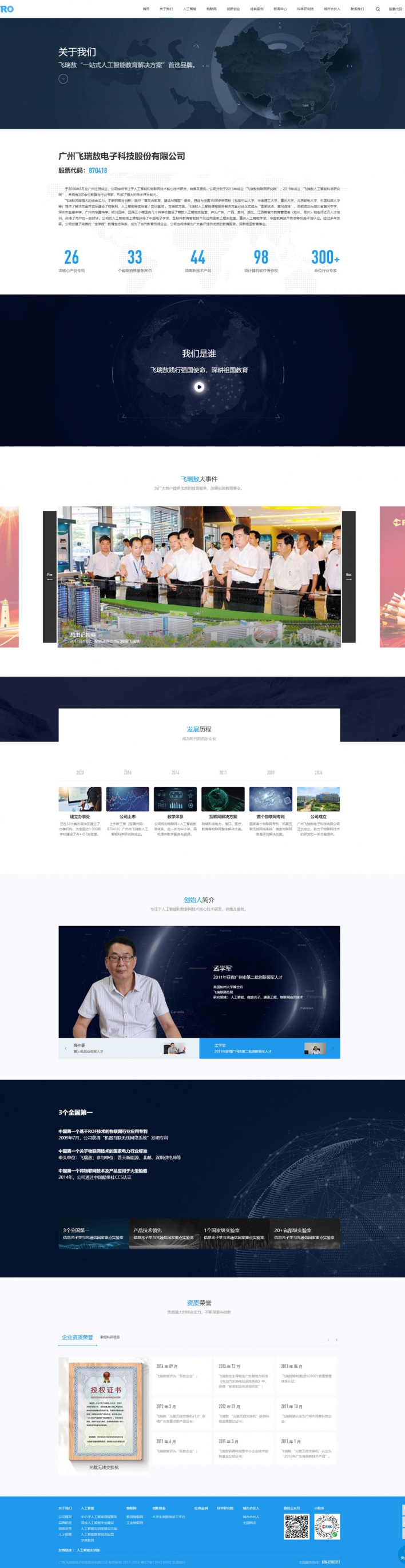廣州飛瑞敖電子科技股份有限公司于2006年8月在廣州注冊成立,公司始終專注于人工智能和物聯網技術核心技術研發、銷售及服務。公司分別于2016年成立“飛瑞敖物聯網研究院”、2019年成立“飛瑞敖人工智能科學研究院”,并擁有300余位教育與行業專家,形成了強大的技術開發能力。